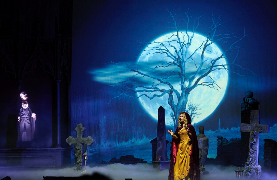Nicht nur die Darsteller, sondern auch die beeindruckende Szenerie sorgt für Gänsehaut! Das spektakuläre Bühnenbild lebt von der perfekten Verbindung aus grandiosen, dreidimensionalen Videoprojektionen des international gefeierten Multimediakünstlers Daniel Stryjecki und den atemberaubenden Bühnenkonstruktionen von Michael Scott, dem berühmten Bühnenbildner der Metropolitan Opera in New York.