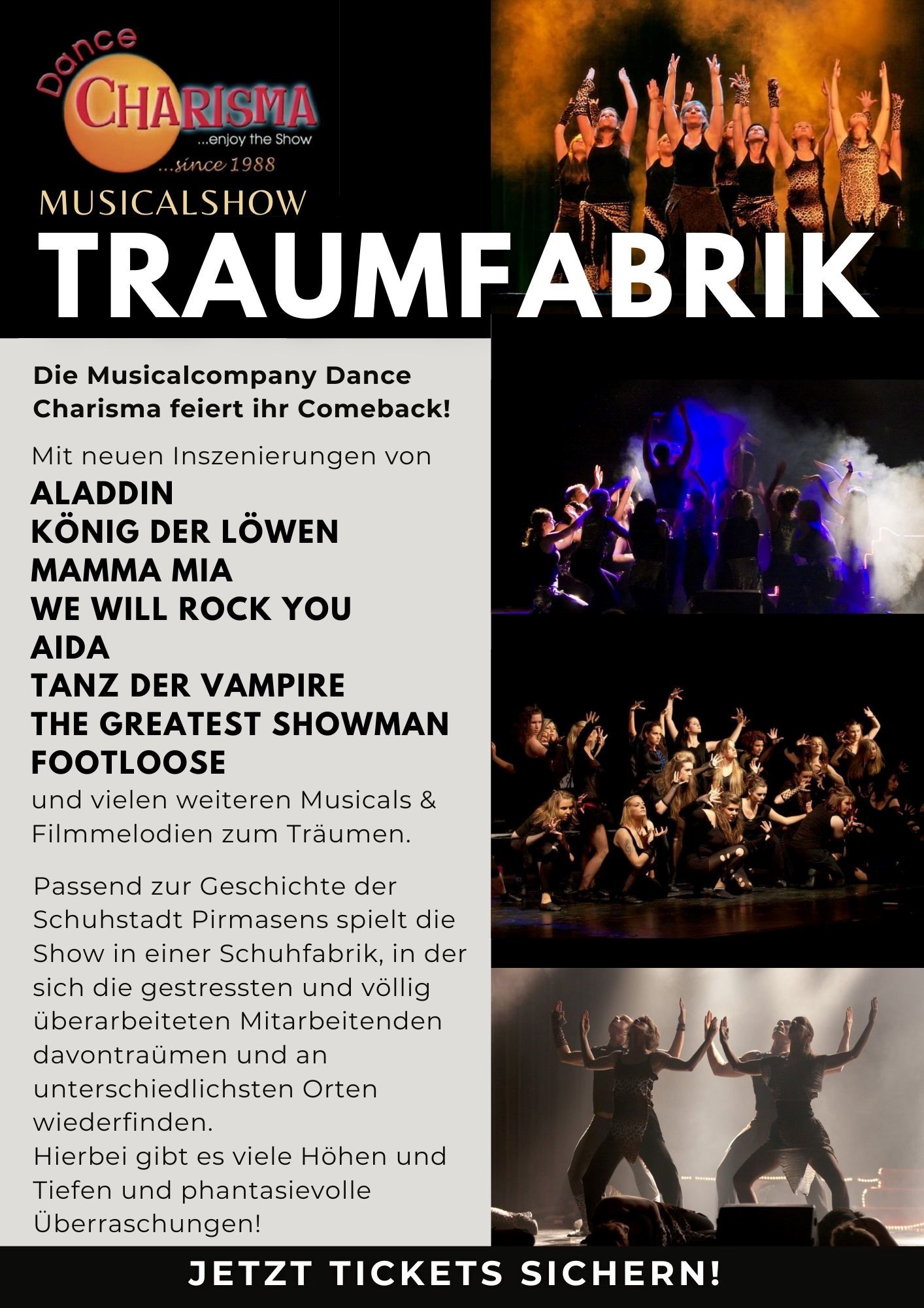 Am Freitag, 22.November 2024 veranstaltet die Musical Company Dance Charisma in der Festhalle Pirmasens eine Show, bei der über 100 Mitwirkende auf der Bühne stehen werden.