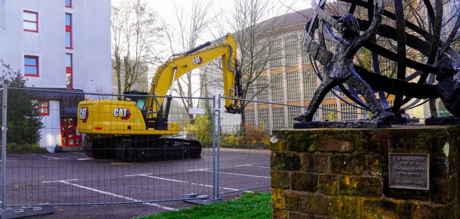 Grund dafür sind geplante Rückbauarbeiten am dahinterliegenden Schulgebäude. Dafür ist es notwendig u.a. einen mobilen Schwerlastkran auf dem Parkplatz aufzubauen.