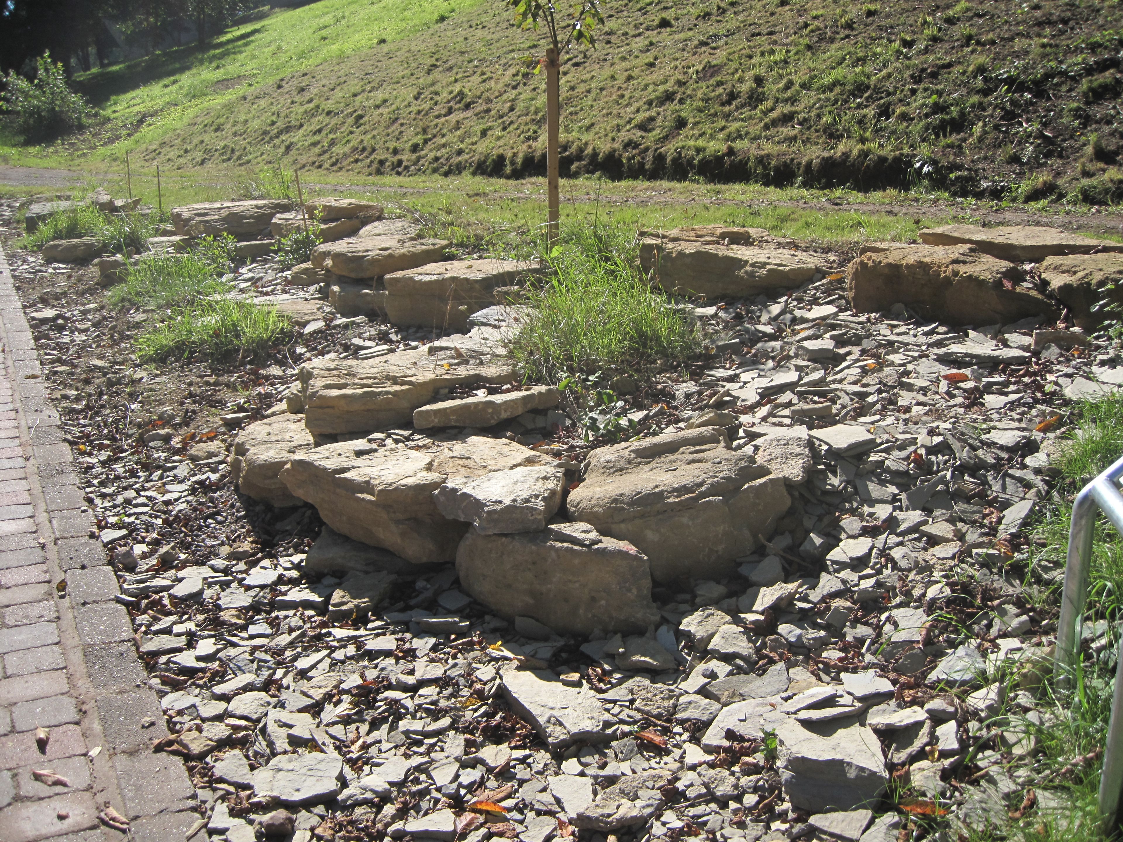 Der Geologiepfad im Strecktal entstand anläßlich des Rheinland-Pfalz-Tages 2013. Auf Anregung des Garten- und Friedhofsamtes sollten alle Kommunen, die bis dahin den Rheinland-Pfalz-Tag ausgerichtet hatten, sich mit einer für ihre Region typischen Gesteinsspende sowie einer Pflanzenspende an dem Pfad beteiligen. Erfreulicherweise haben sich die meisten Kommunen an diesem Projekt beteiligt, so daß ein Pfad mit 25 Gesteinsproben aus ganz Rheinland-Pfalz entstehen konnte. Die regionaltypischen Kompositionen aus Geologie, Vegetation und weiteren Requisiten, mit denen sich die Kommunen präsentieren, sind im unteren Bereich des Parkgeländes zu finden.
