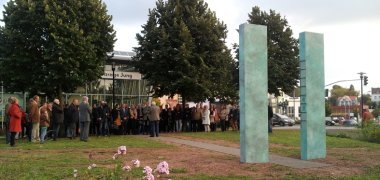 Zentrale Gedenkstätte am Bahnhofsvorplatz nach dem Entwurf des Künstlers Clas Steinmann, 2014 © Stadt Pirmasens
