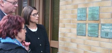 Gedenktafeln an der Schäferstraße 20, Anbringung 2016 mit Nachfahren der Familien © StArchiv PS