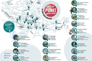 Mit kurzen Audiodateien gibt der hörbare Stadtrundgang Auf den Punkt gebracht - Uff de Punkt gebrung einen