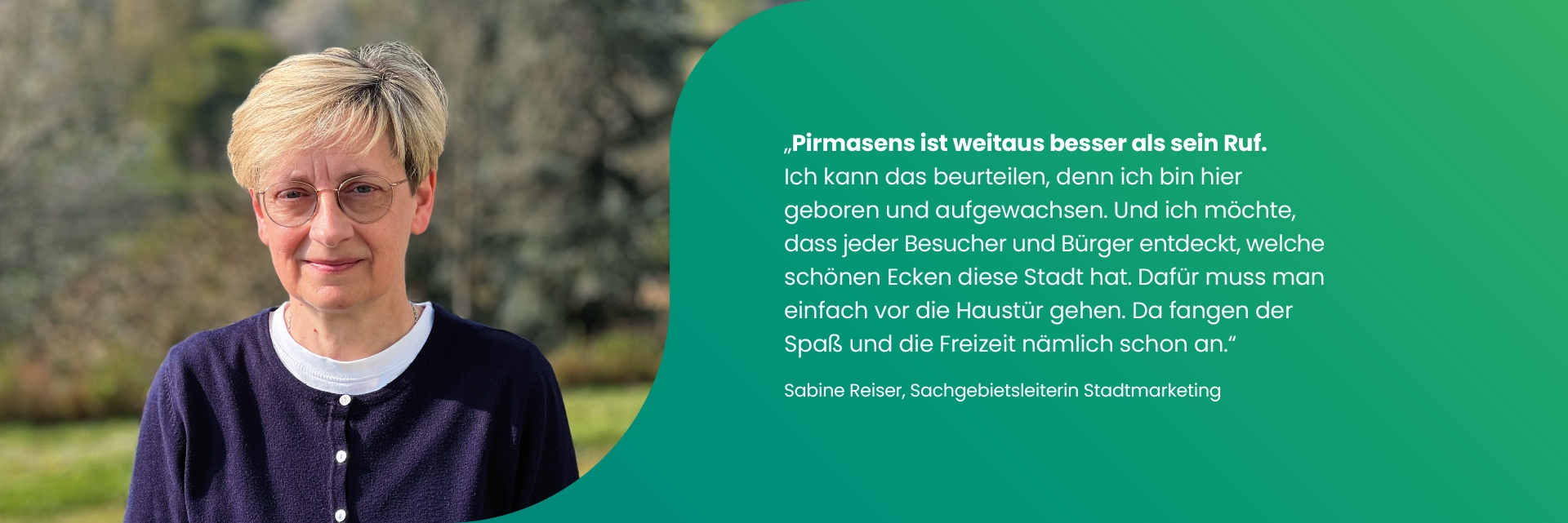 Pirmasens ist als dynamische Outdoor- und Naturstadt sowie als Zentrum für Naherholung bekannt. Durch vielfältige Freizeit- und Gastronomieangebote ist die Stadt ein attraktives Ziel für Natur- und Aktivurlauber sowie eine Oase der Erholung für Bürger und Gäste.