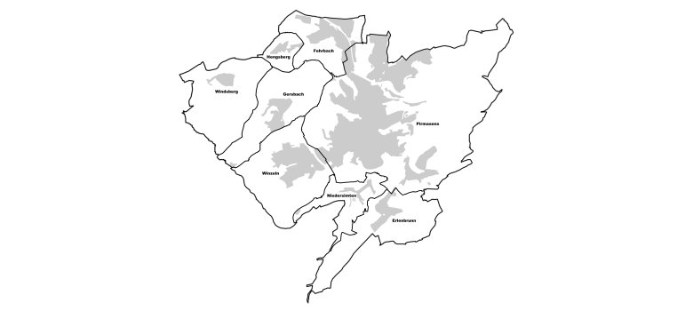 Des Weiteren umfasst die Stadt Pirmasens als kreisfreie Stadt die Ortsbezirke Erlenbrunn, Fehrbach, Gersbach, Hengsberg, Niedersimten sowie Windsberg und Winzeln.