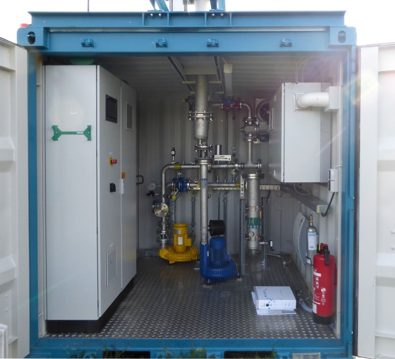 Die im sanierten, rekultivierten Deponiekörper noch befindlichen Restgase, hervorgerufen von Fäulnisaktivitäten organischer Abfälle im Inneren der ehemaligen Hausmülldeponie (Abfallvolumen 2 Millionen Kubikmeter), werden über sogenannte Rigolen aufgefangen und zu der seit dem 6. Mai 2021 in Betrieb befindlichen "Schwachgas-Behandlungsan-lage" auf dem Kuppenhochpunkt der Neudeponie weitergeleitet.