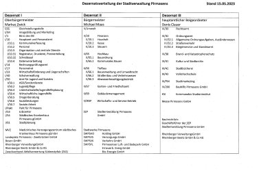 Die Gliederung der Ämter geordnet nach Dezernaten. Einträge sind jeweils direkt mit den Detailinformationen zu den Ämtern verknüpft - alle Adressen, Öffnungszeiten, Kontaktdaten, Aufgaben und Mitarbeiter auf einen Blick.